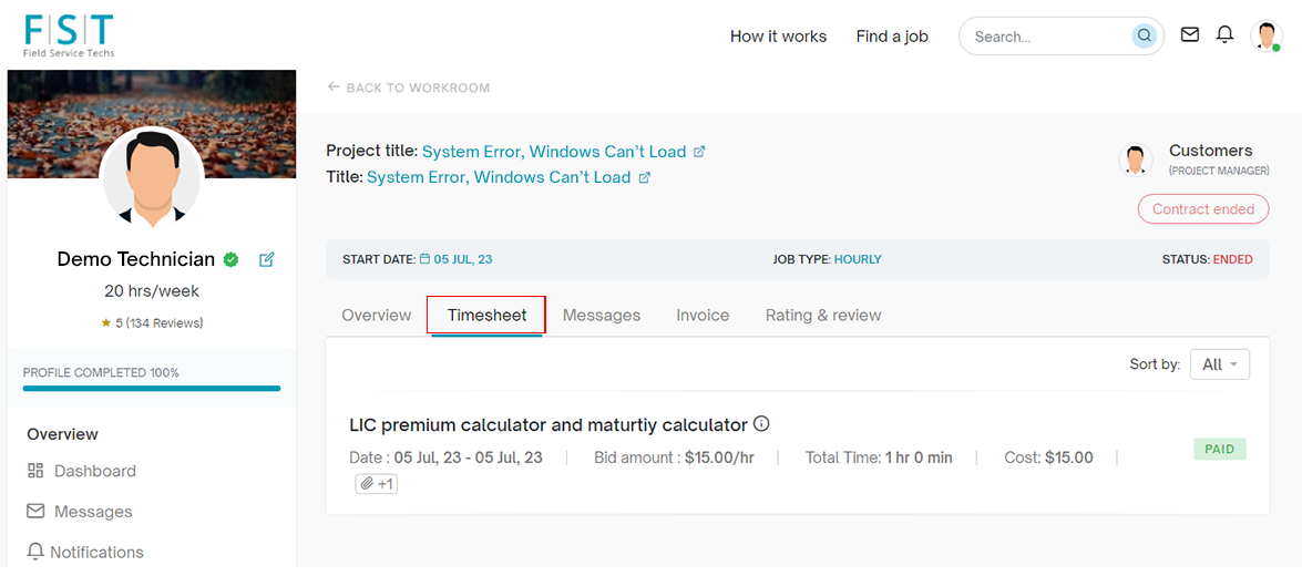 In case of hourly jobs, you can create & share your timesheet and let the customer keep track of your work duration.